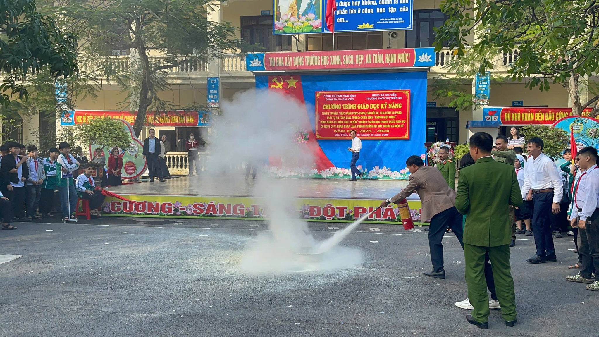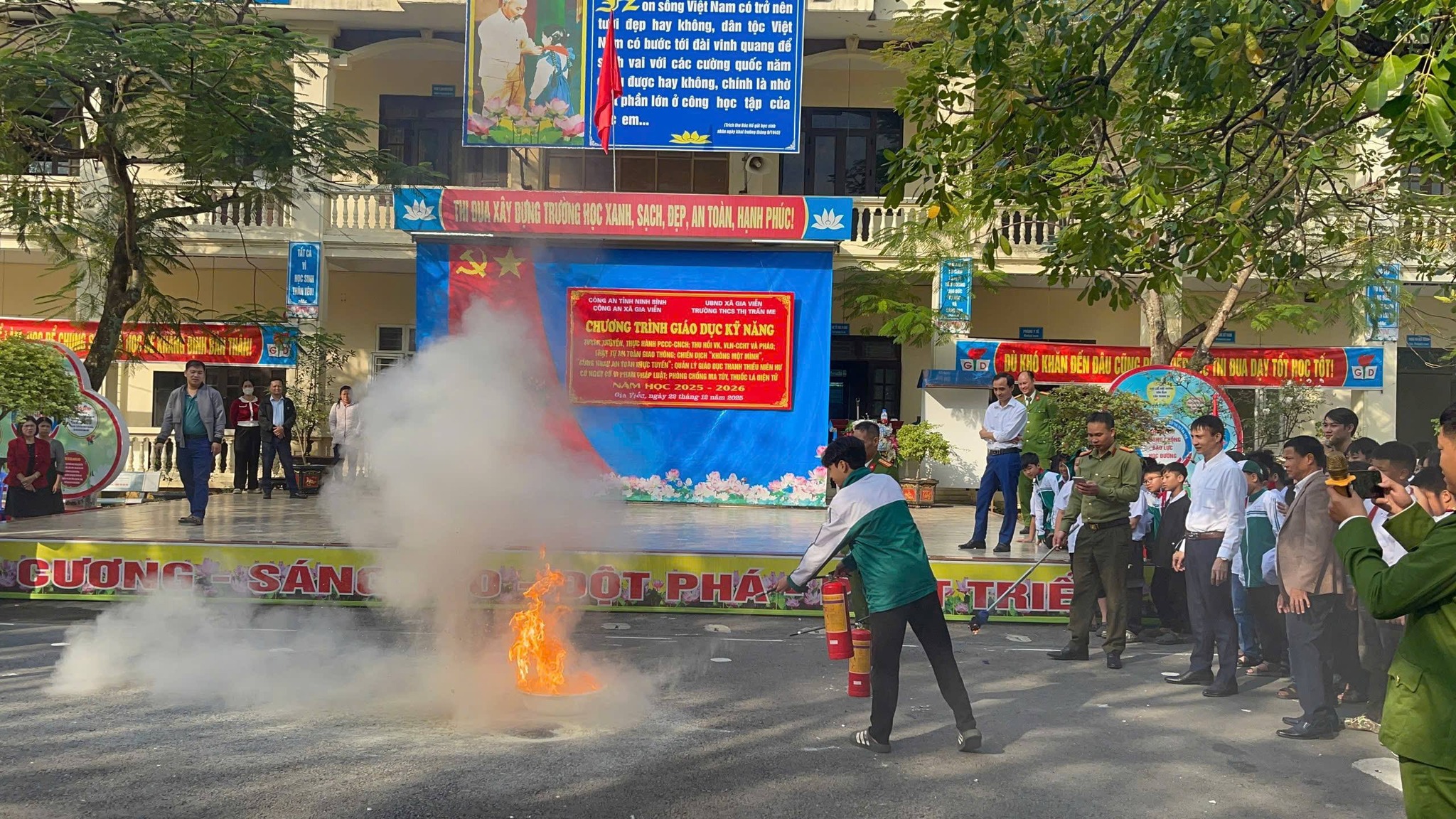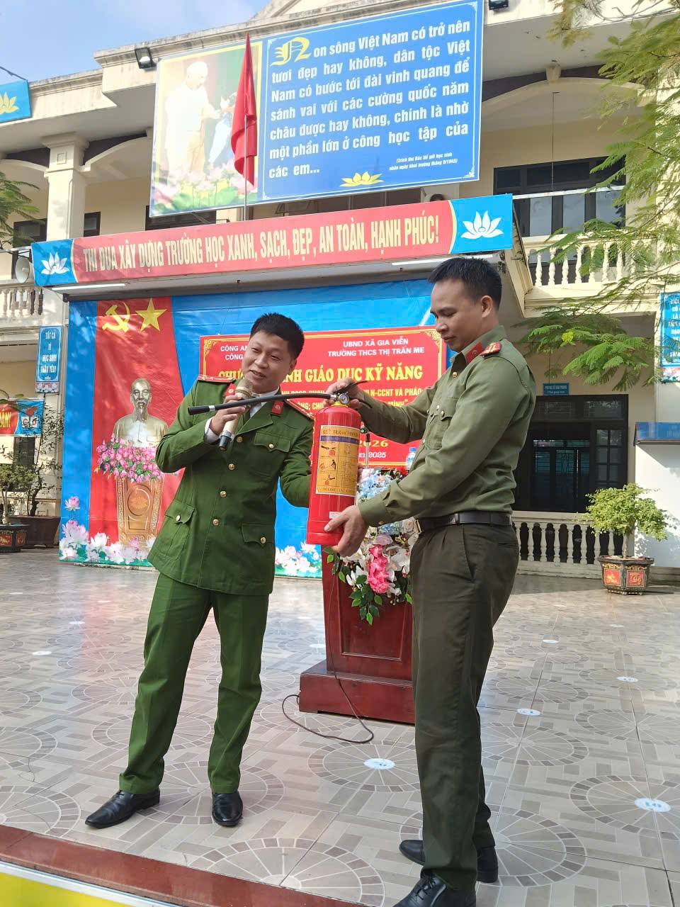 Sáng ngày 22/12/2025, Trường THCS Thị trấn Me đã phối hợp cùng Công an huyện Gia Viễn tổ chức thành công buổi ngoại khóa giáo dục kỹ năng sống, tập trung vào các vấn đề cấp thiết hiện nay: Phòng cháy chữa cháy (PCCC), phòng chống ma túy và an toàn an ninh mạng.